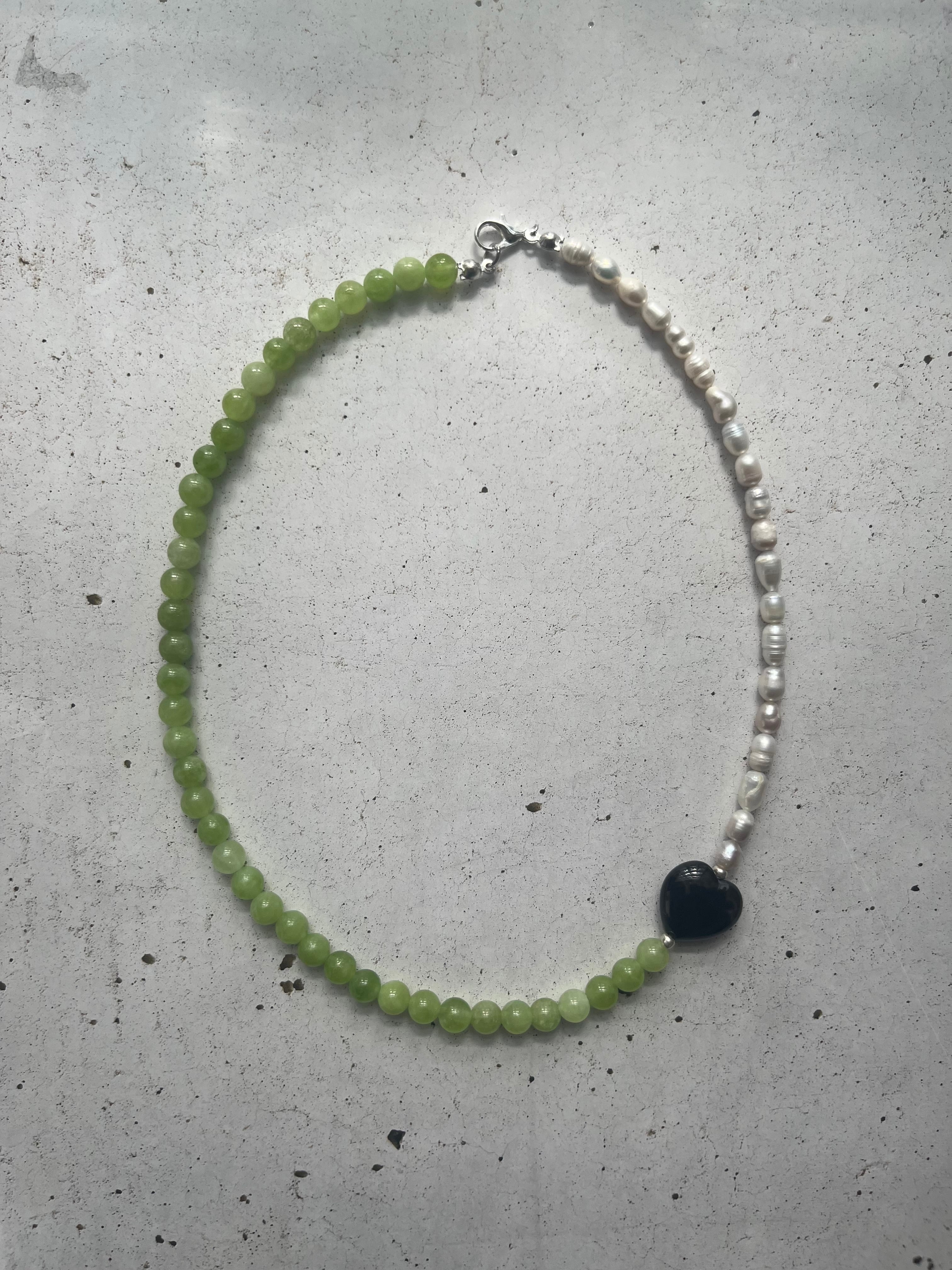 翡翠のラウンドビーズと淡水パールで作ったネックレス✨