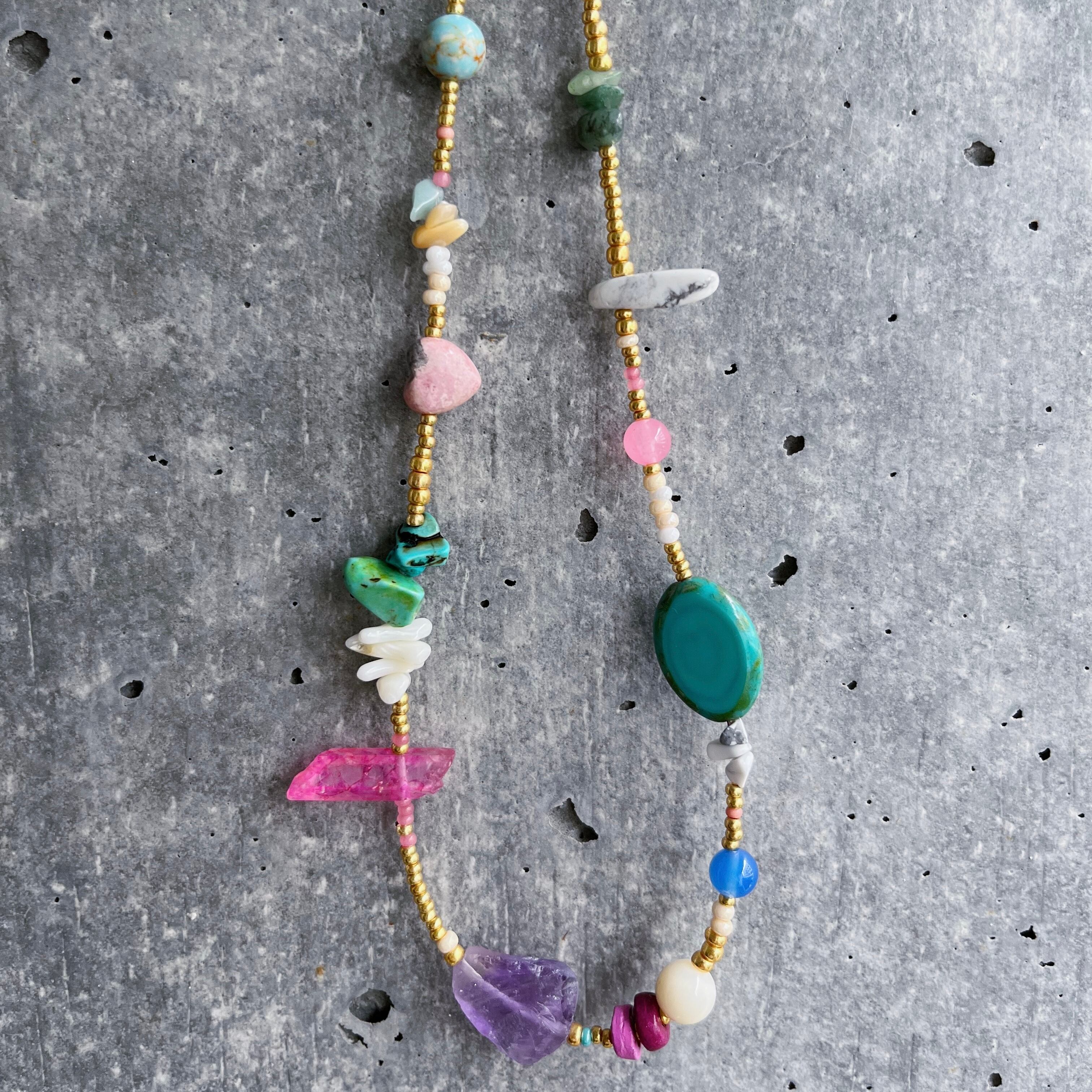 ゴールドビーズのベースに天然石をふんだんに使ったネックレスのシリーズです✴︎