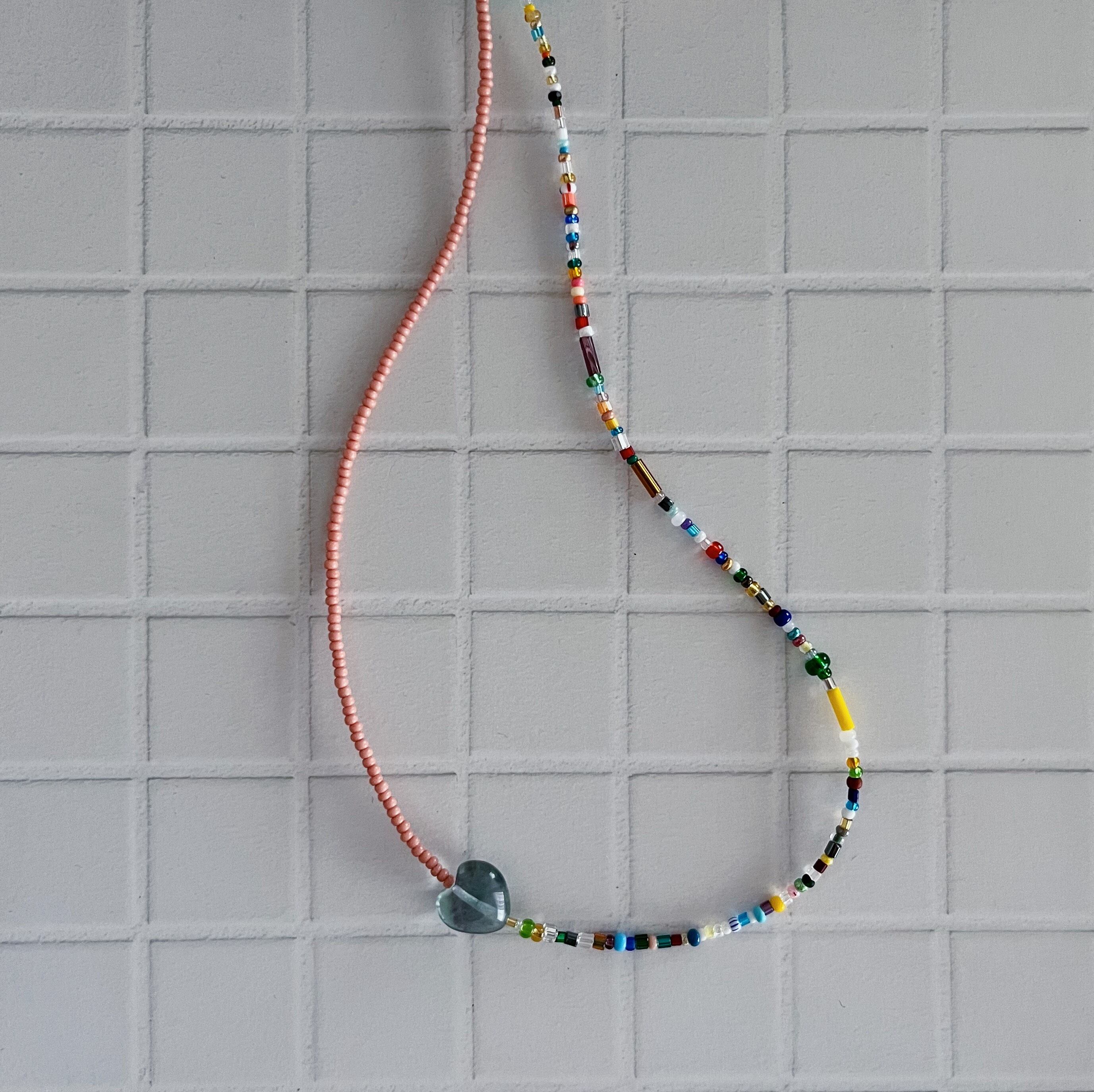 カラフルなビーズと天然石で仕上げたネックレスです❤︎