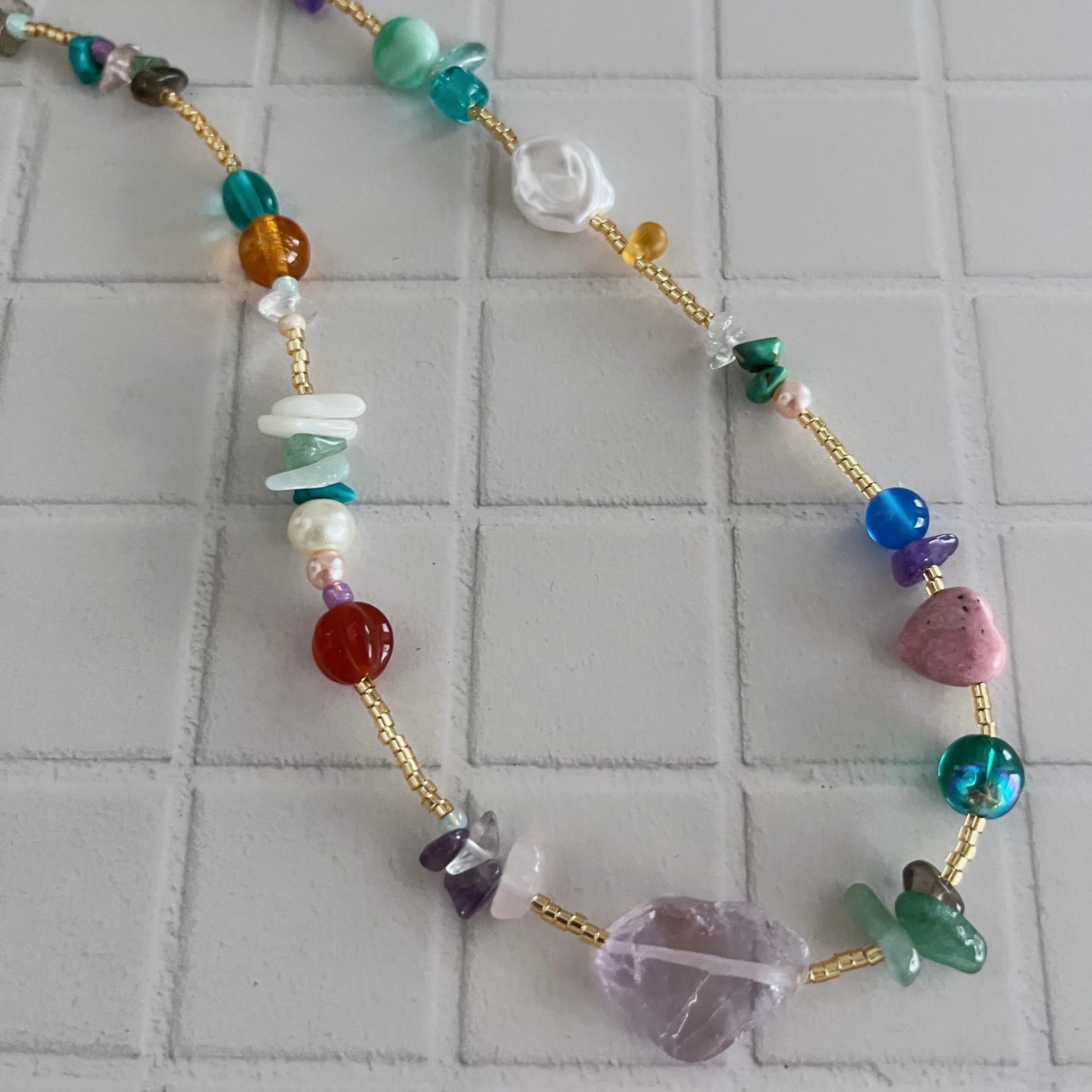 ゴールドビーズのベースに天然石をふんだんに使ったネックレスのシリーズです✴︎