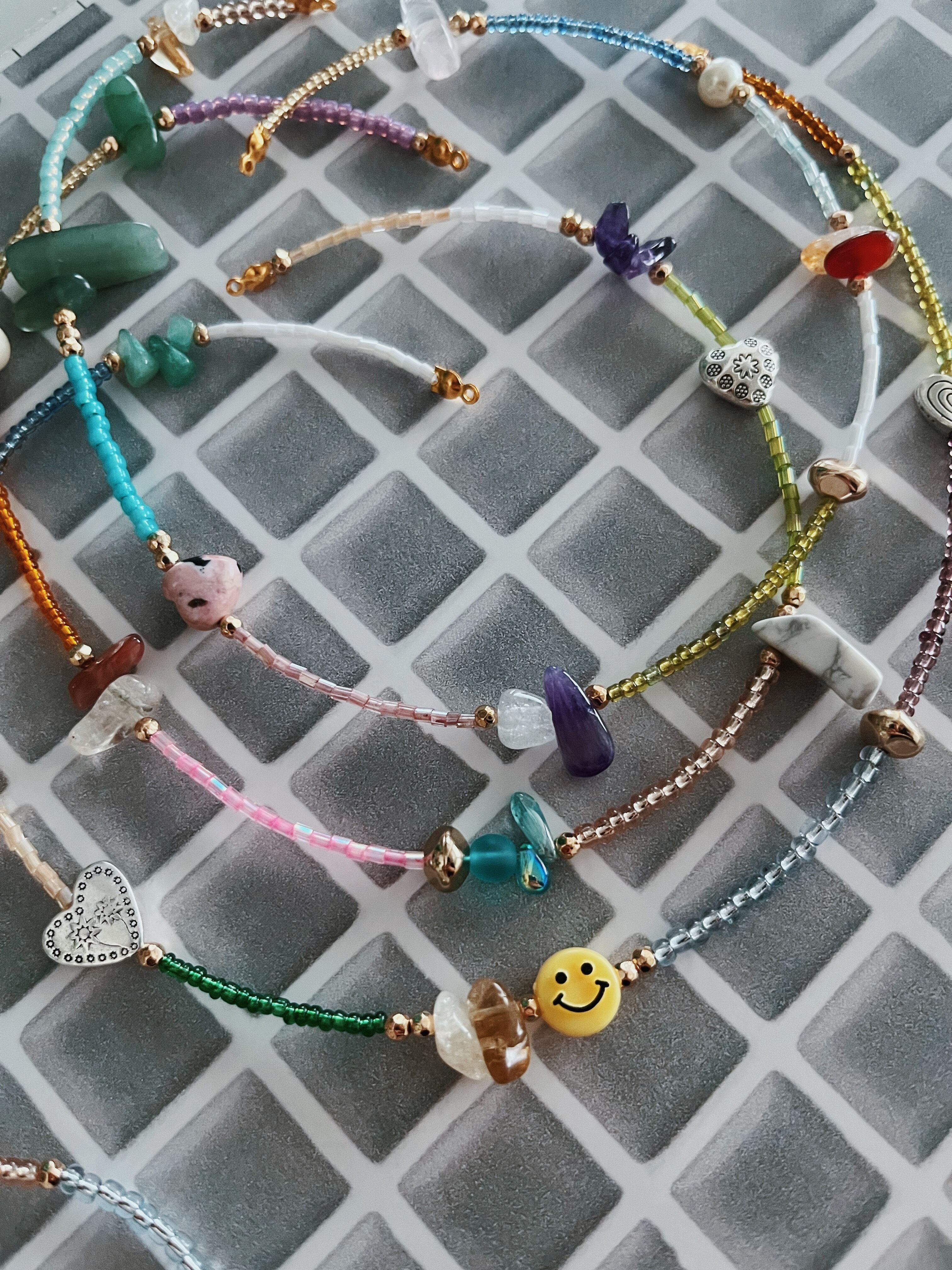 カラフルなビーズと天然石で仕上げたネックレスです❤︎