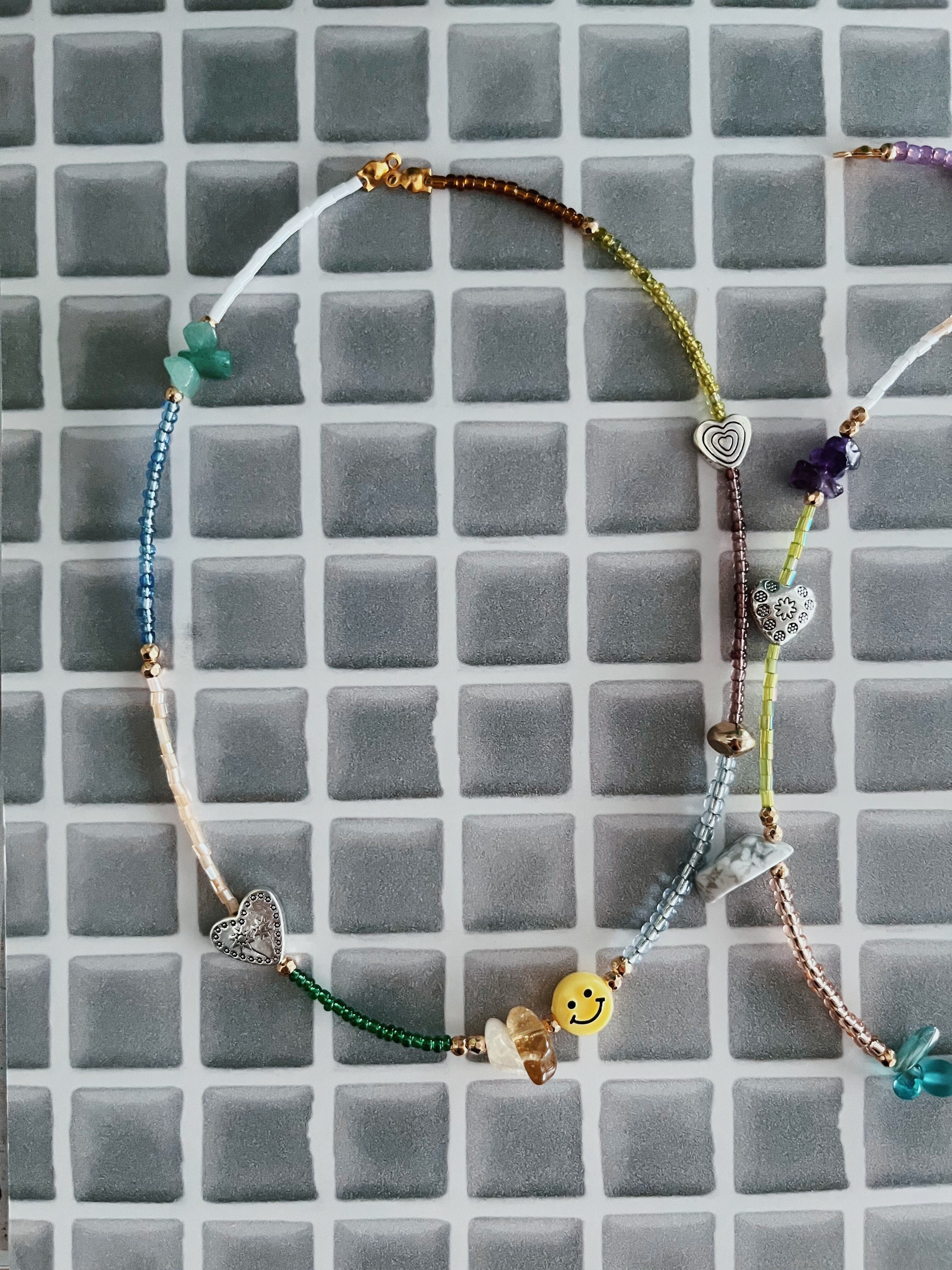 カラフルなビーズと天然石で仕上げたネックレスです❤︎