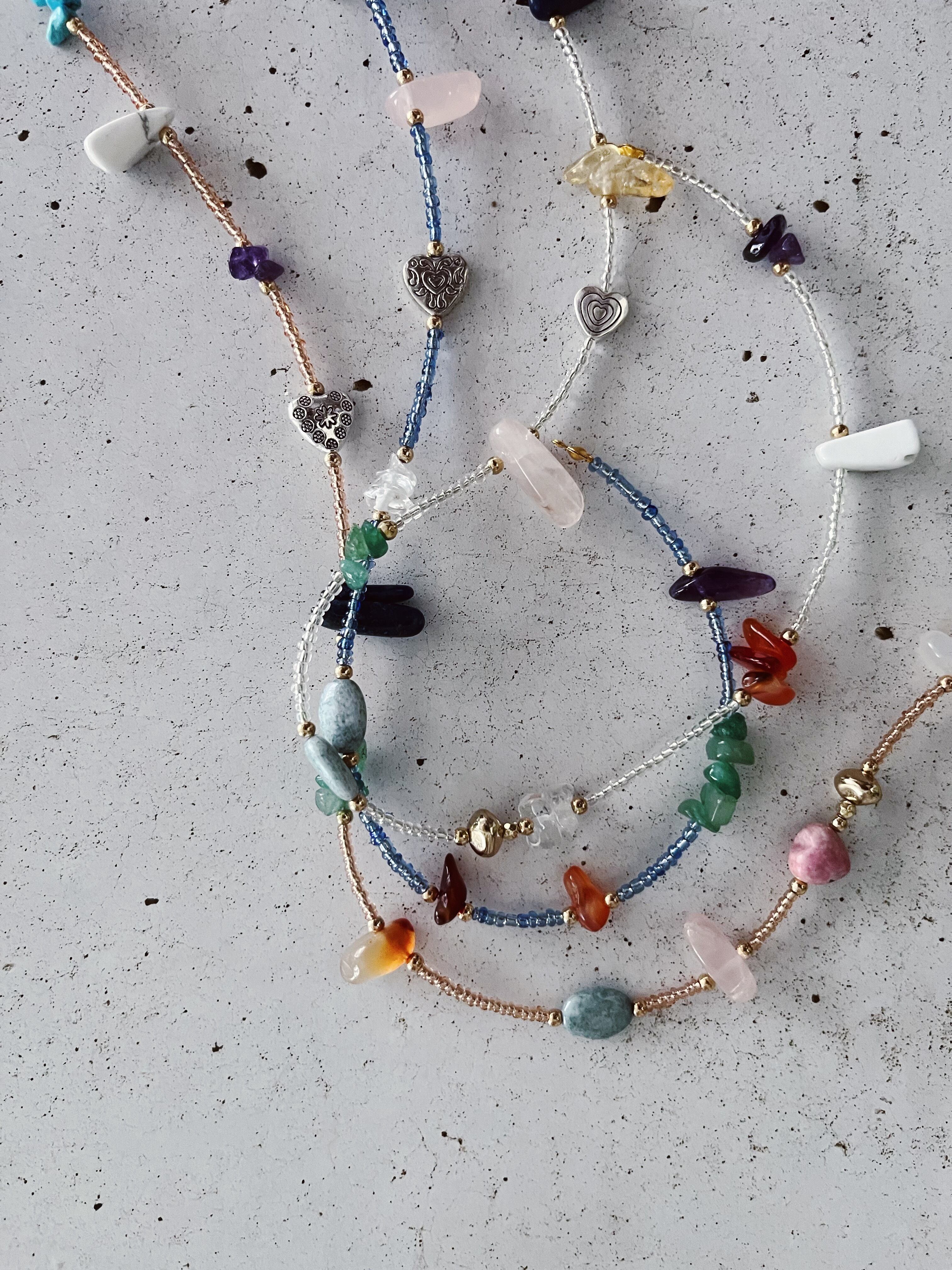 カラフルなビーズと天然石で仕上げたネックレスです❤︎