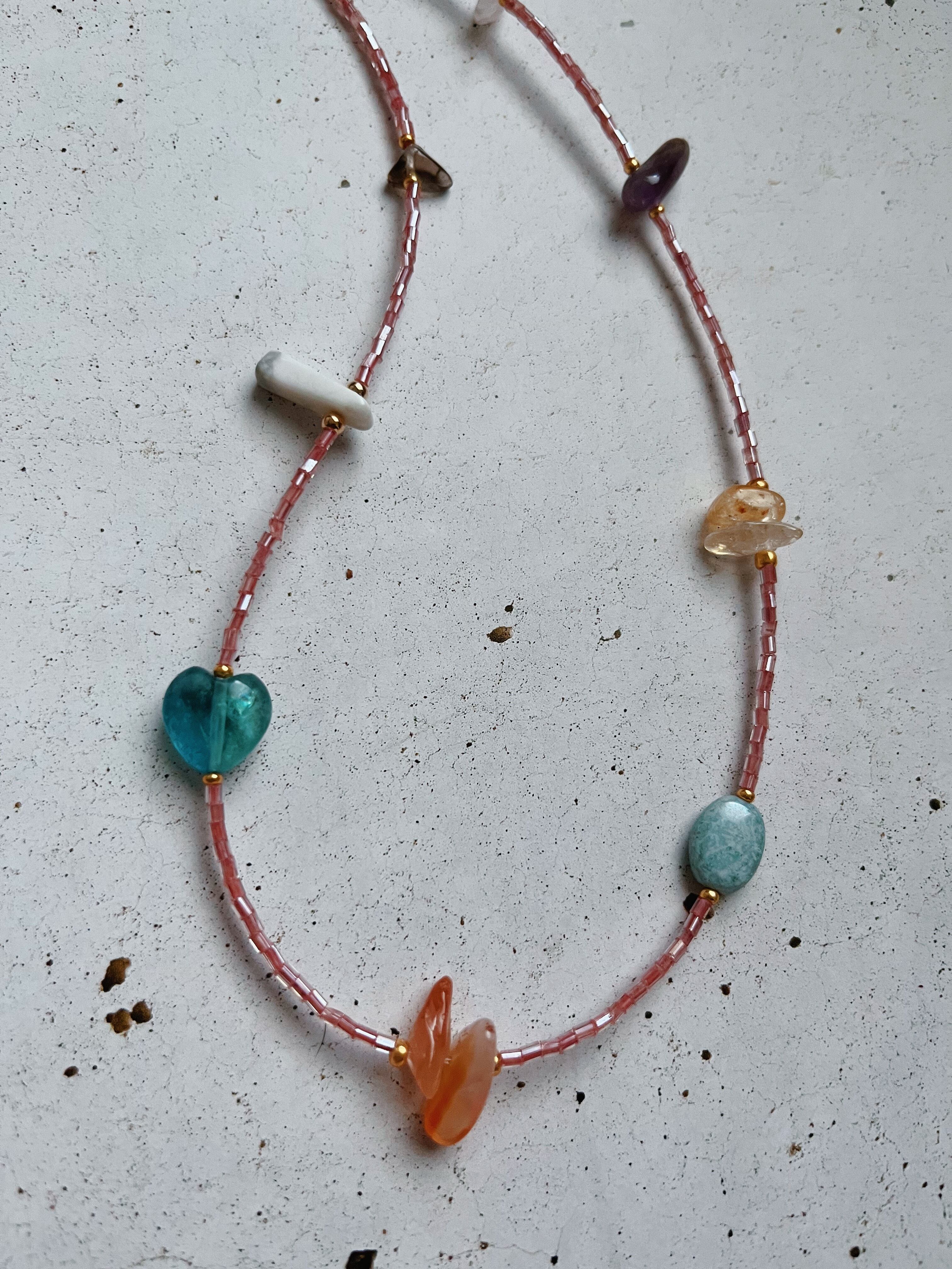 カラフルなビーズと天然石で仕上げたネックレスです❤︎