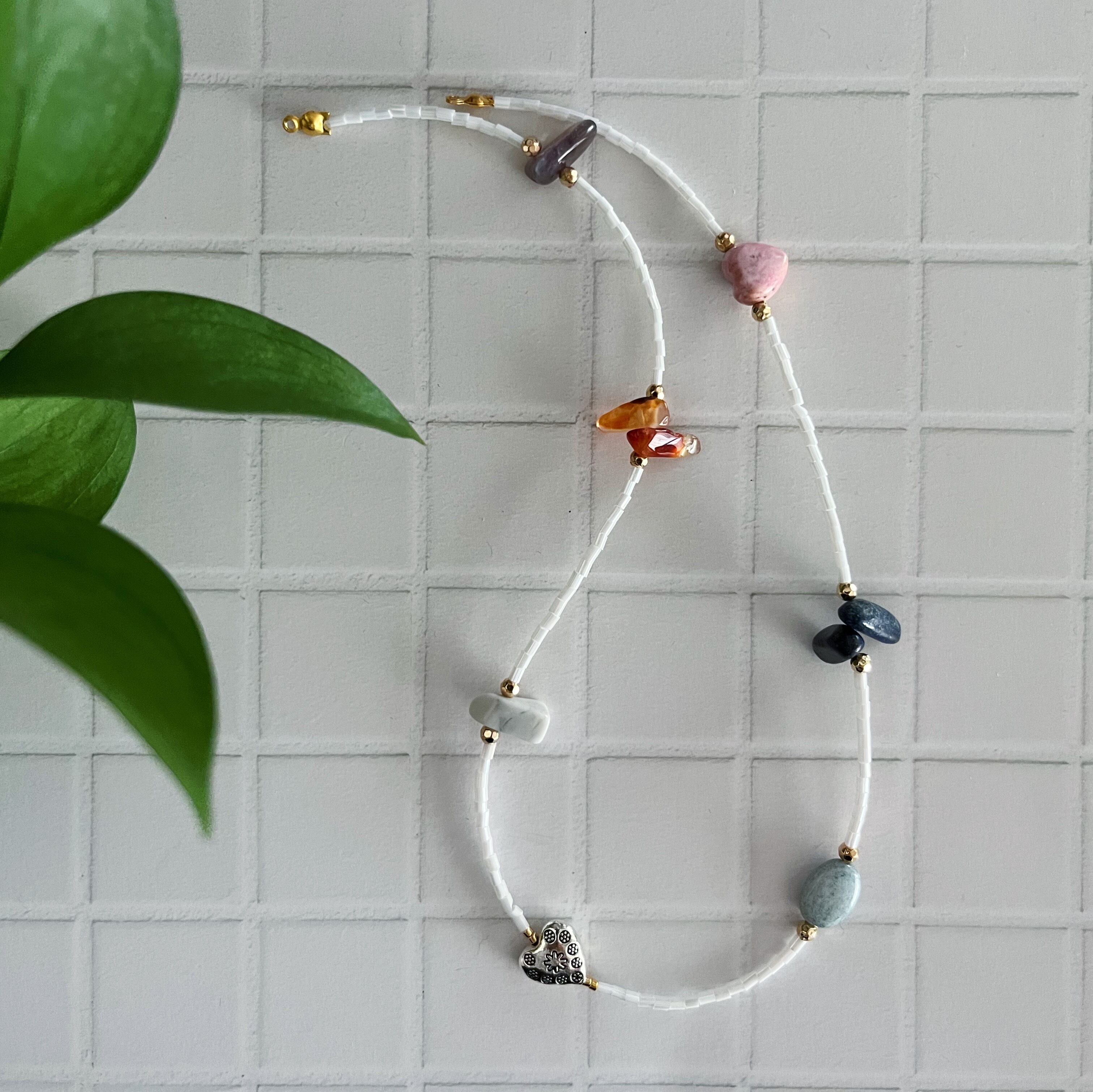 カラフルなビーズと天然石で仕上げたネックレスです❤︎