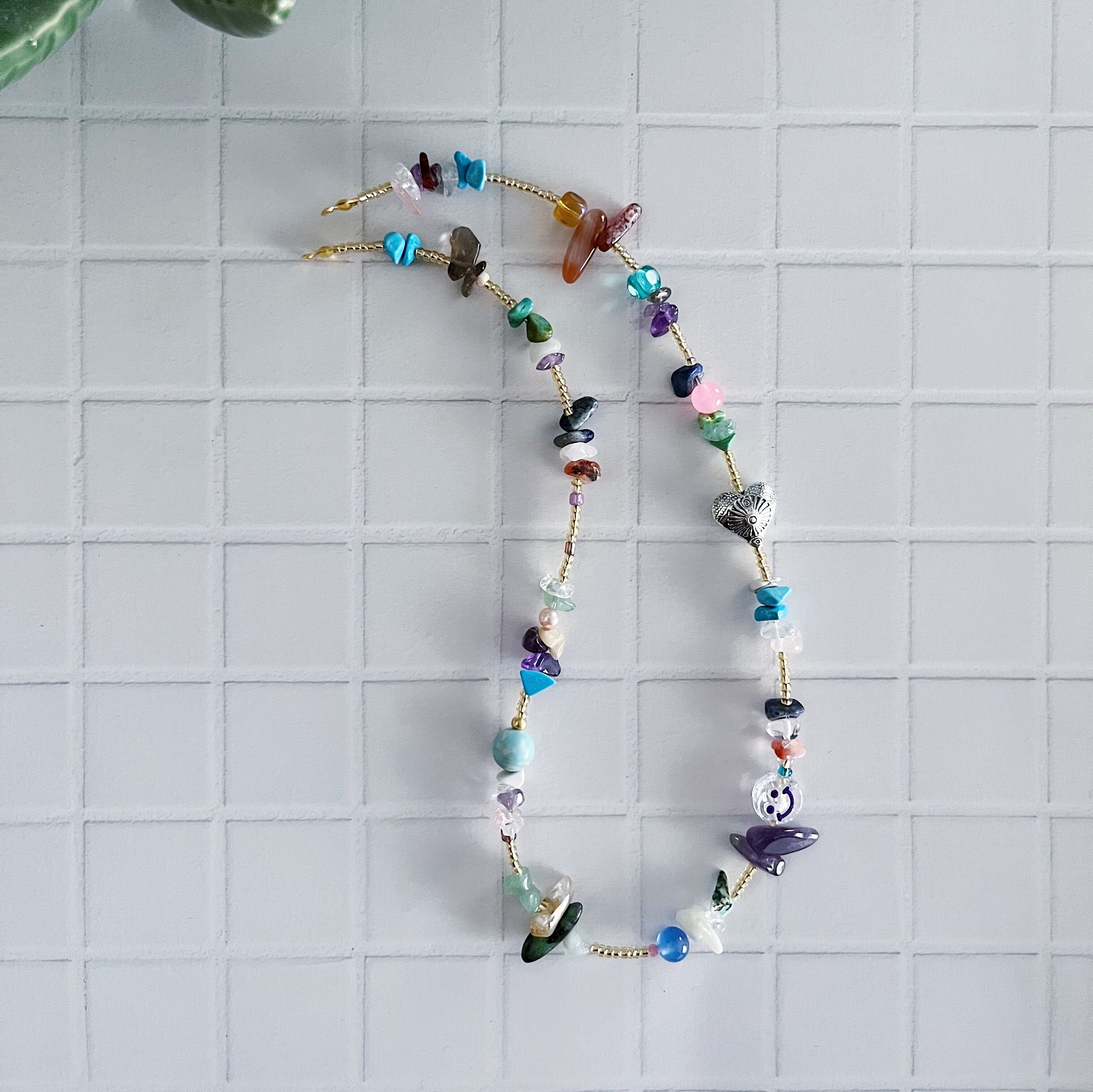 カラフルなビーズと天然石で仕上げたネックレスです❤︎