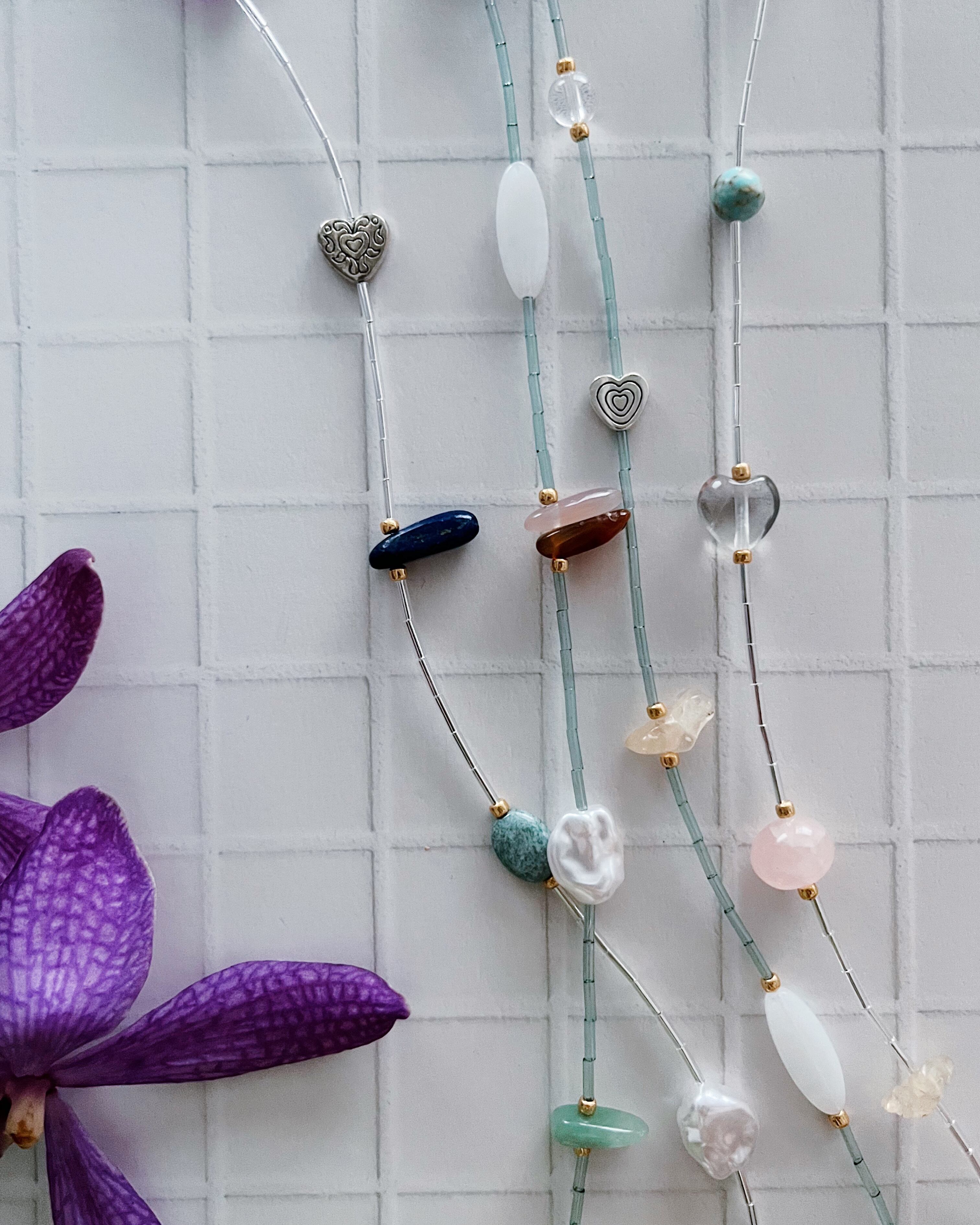 カラフルなビーズと天然石で仕上げたネックレスです❤︎