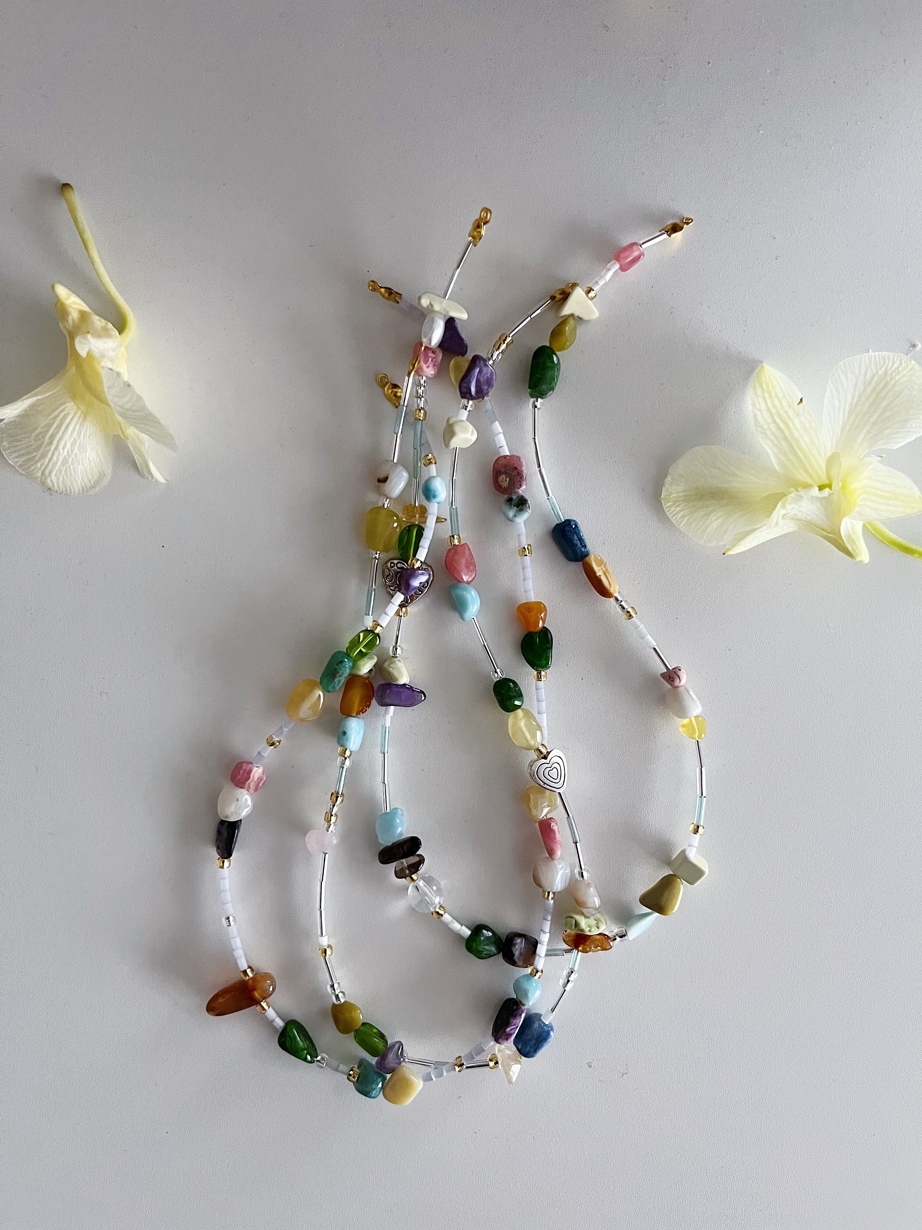カラフルなビーズと天然石で仕上げたネックレスです❤︎