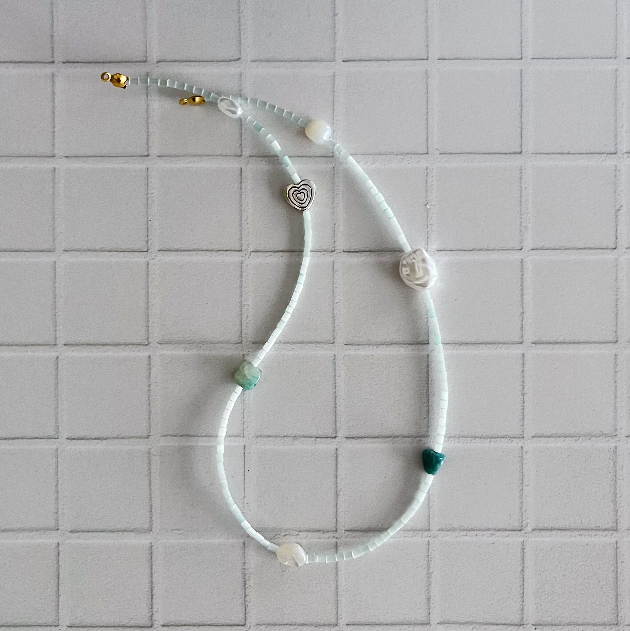 カラフルなビーズと天然石で仕上げたネックレスです❤︎