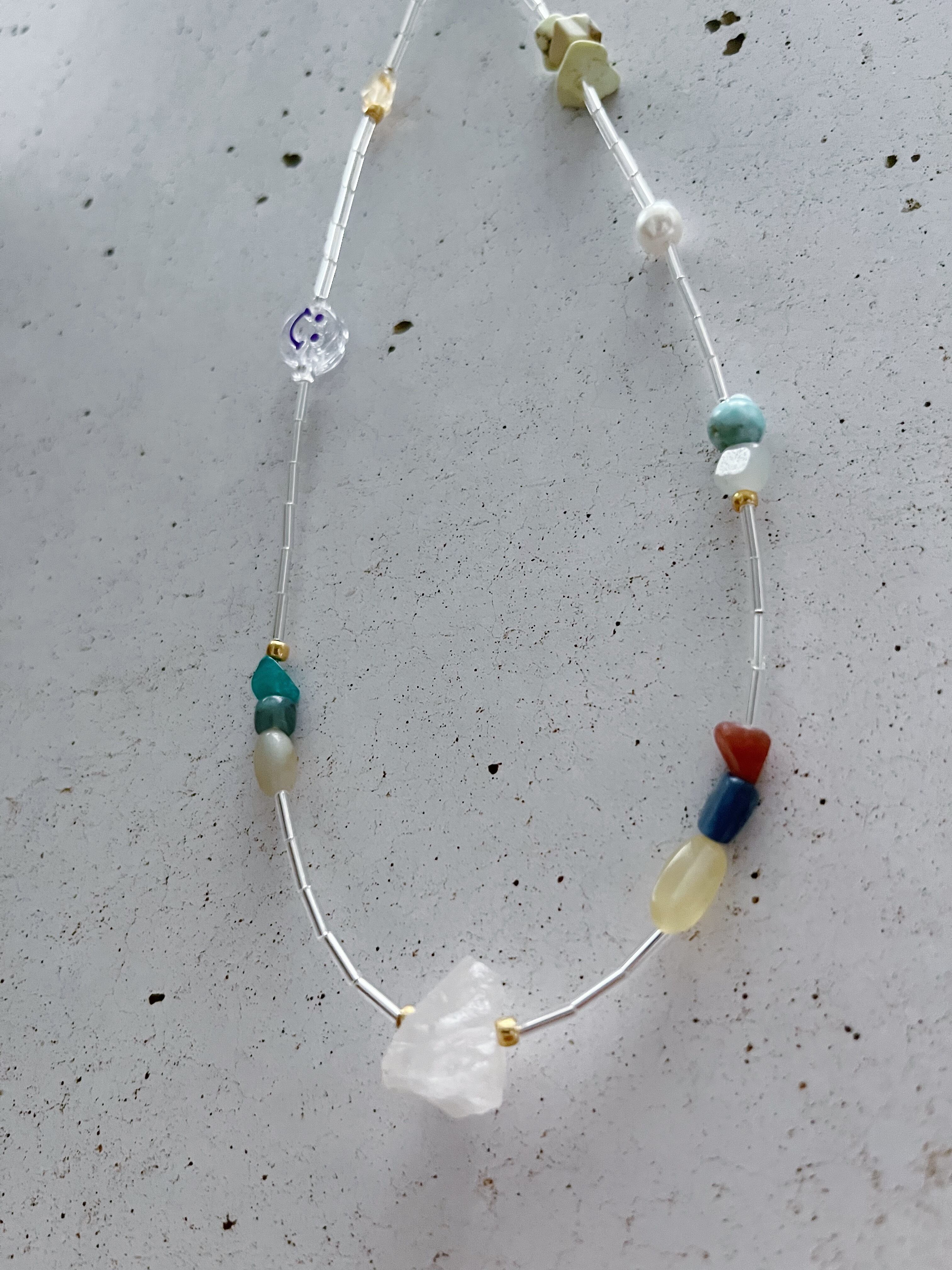 クリアビーズと天然石で仕上げたネックレスです❤︎
