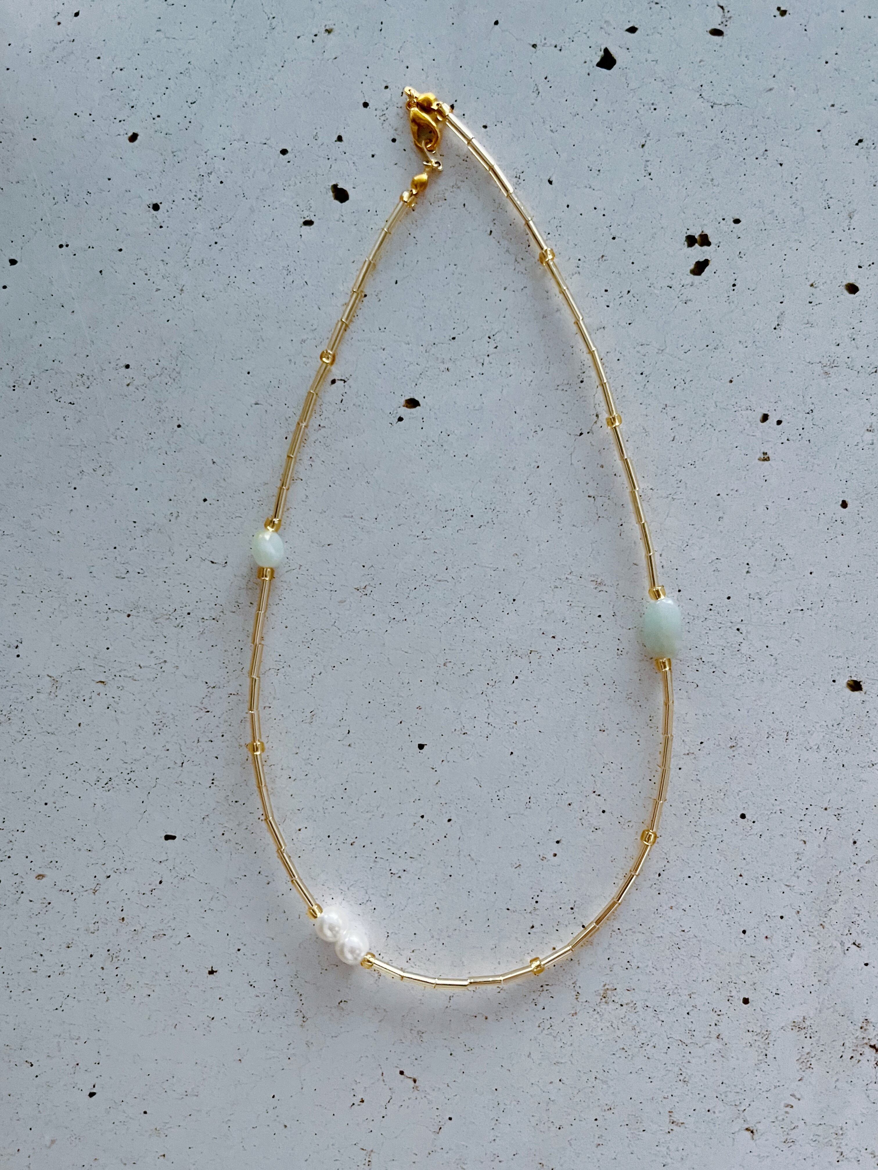 変色しにくいゴールドビーズで仕上げたネックレスです❤︎
