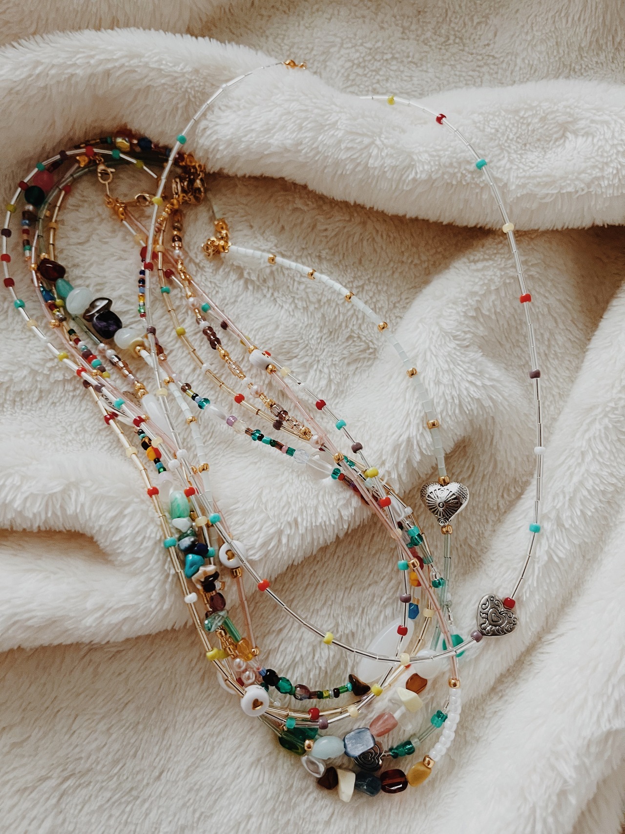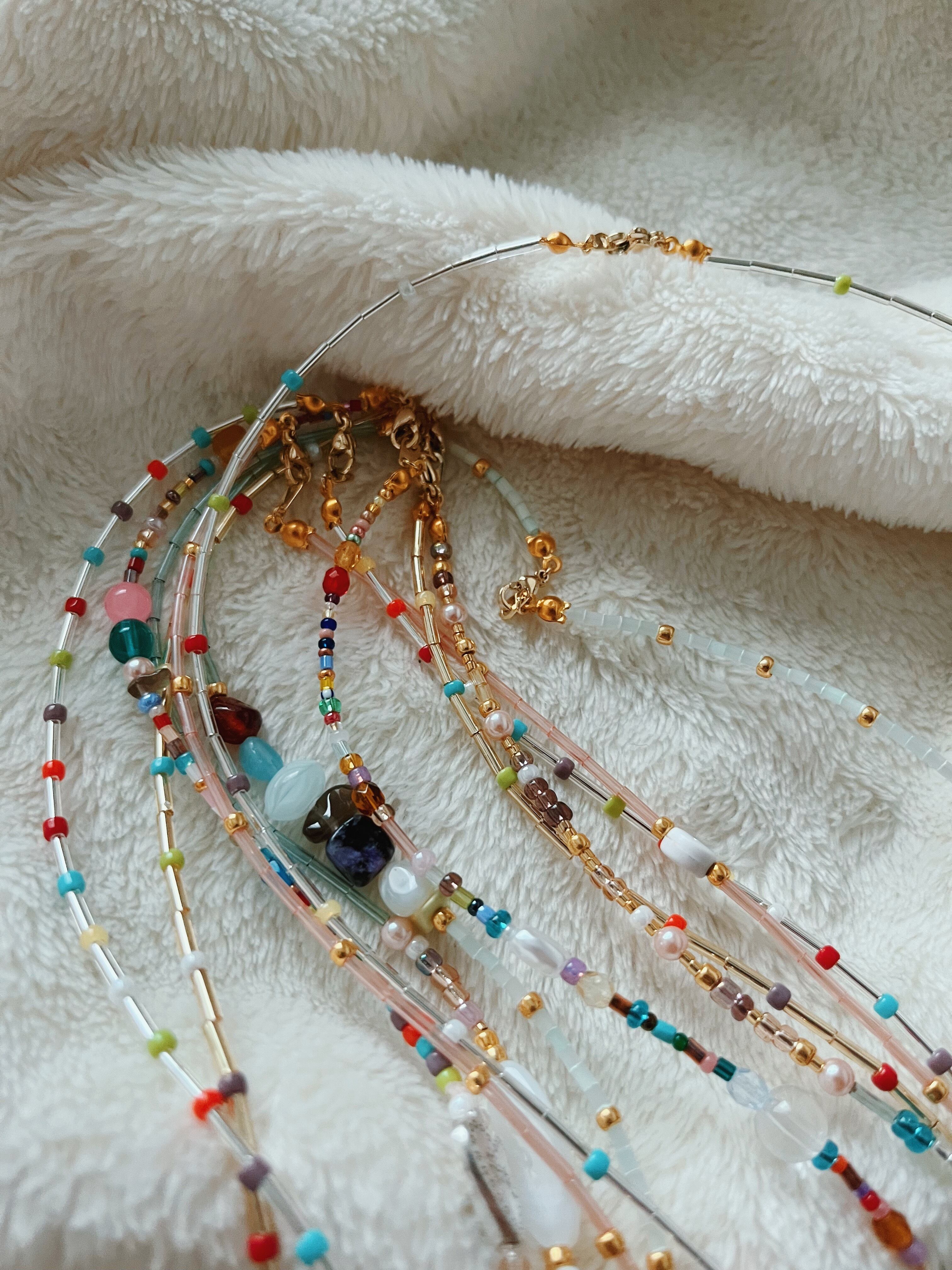 カラフルビーズと天然石で仕上げたネックレス❤︎
