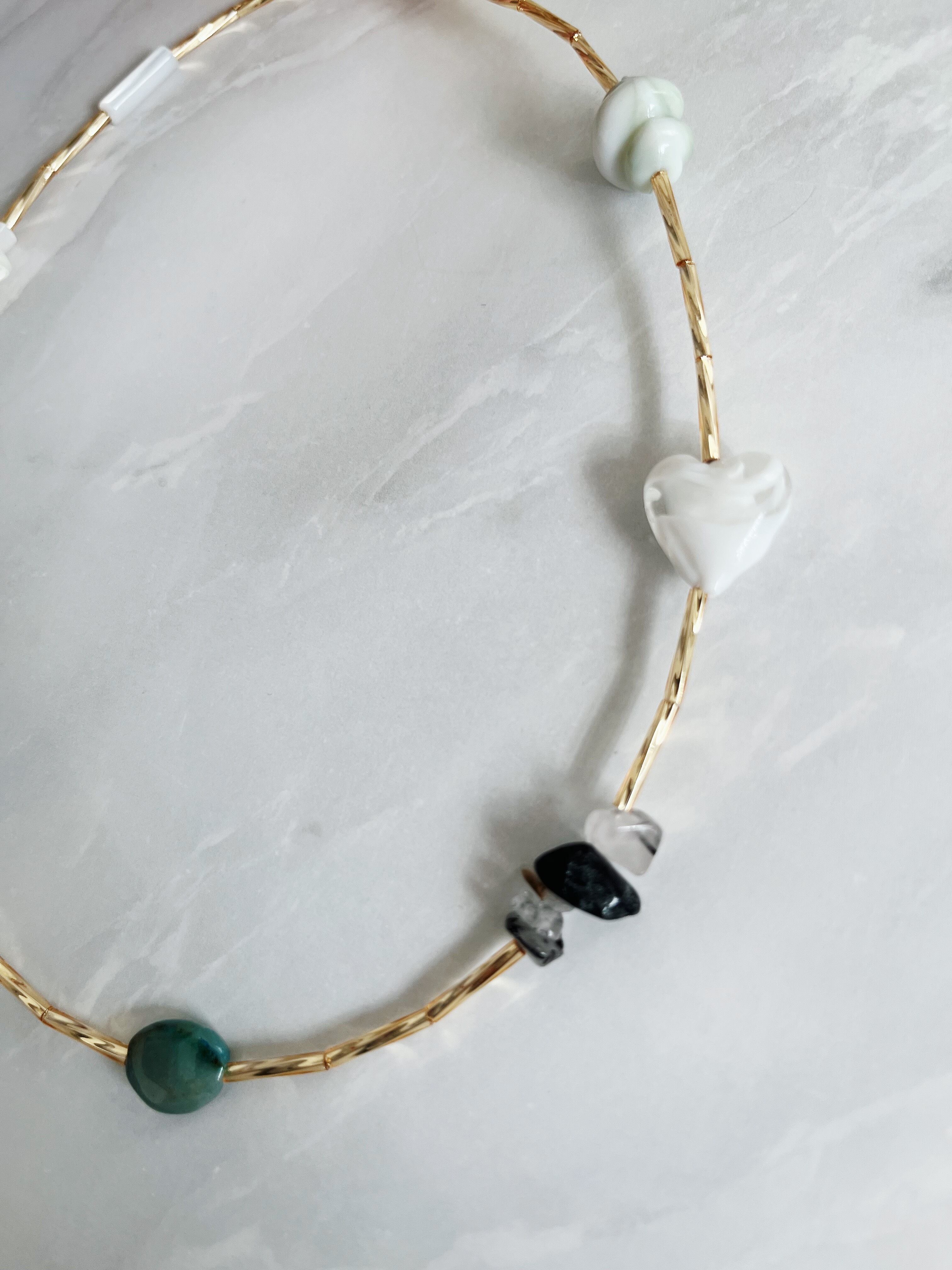ゴールドベースに様々な天然石/ビーズを使って仕上げました✨
