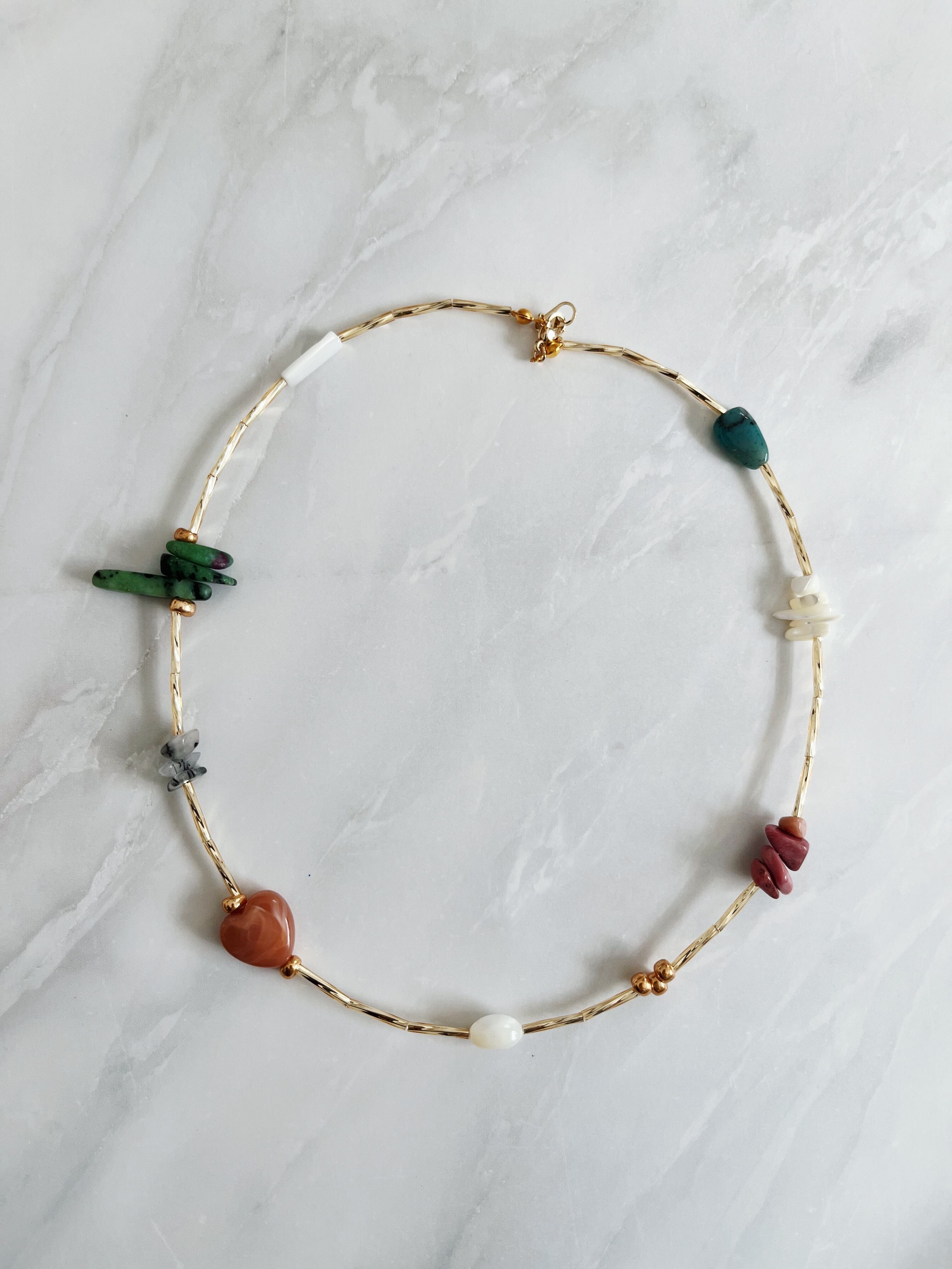 ゴールドベースに様々な天然石/ビーズを使って仕上げました✨