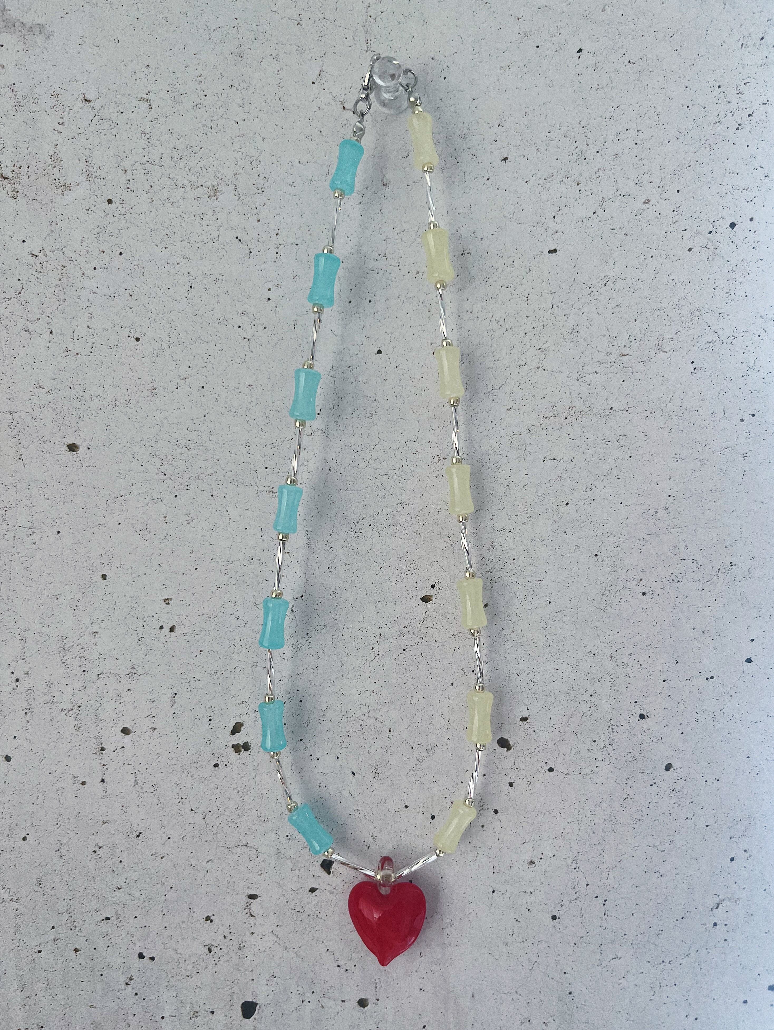 ガラスビーズにハートのガラスチャームがポイントのネックレス✨